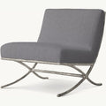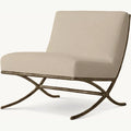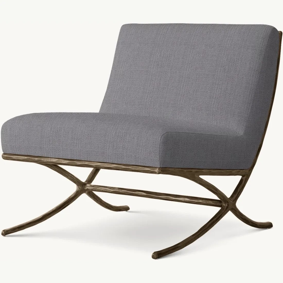 Inspired by the sculptural designs of Diego Giacometti, our chair from Julie Lawrence merges the rustic sensibility of a hand-forged metal base with tailored upholstery. Employing an ancient fabrication process, artisans hand hammer the metal bars to reveal an alive, imperfect and organic texture, a counterpoint to the frame's slender, tapered silhouette.