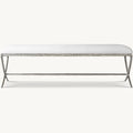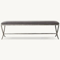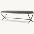 Inspired by the sculptural designs of Diego Giacometti, our bench from Alexander merges the rustic sensibility of a hand-forged metal base with tailored upholstery. Employing an ancient fabrication process, artisans hand hammer the metal bars to reveal an alive, imperfect and organic texture, a counterpoint to the frame's slender, tapered silhouette.