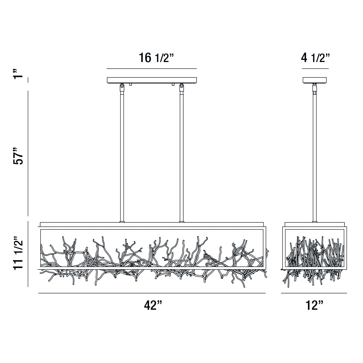 Luxuriously showcasing stunning organic forms inspired by the beautiful antler coral of the Caribbean Sea, the Aerie Linear Suspension Lamp is a feat of contemporary design that demonstrates a true balance between all elements. The clean, crisp geometry of its open rectangular structure sets off and emphasizes the marvelous movement depicted by its striking silhouette. A pair of diagonally aligned LED lights dot the top of the frame, their subtle glow illuminating the interconnected, free-moving sculptural design.