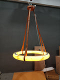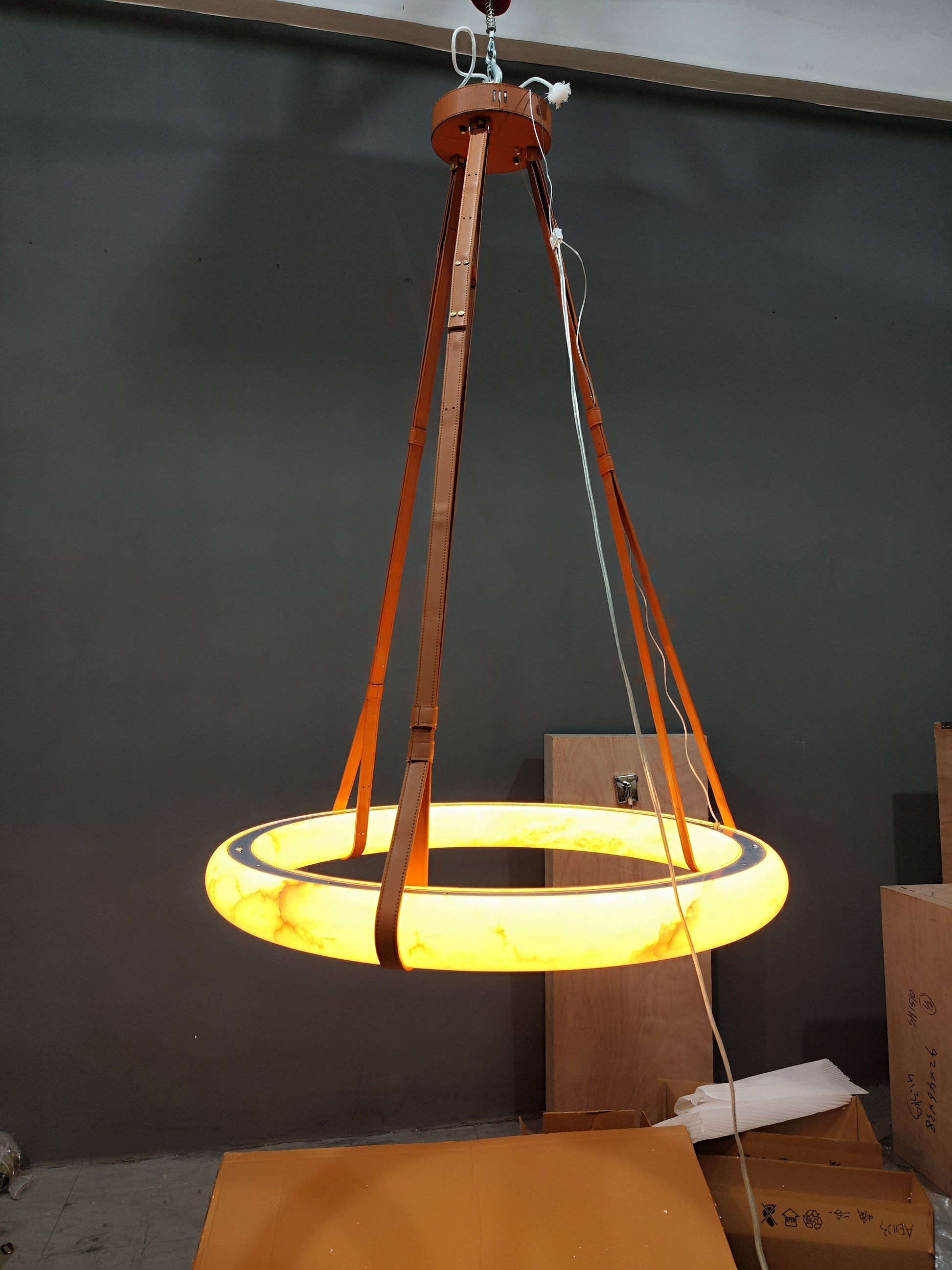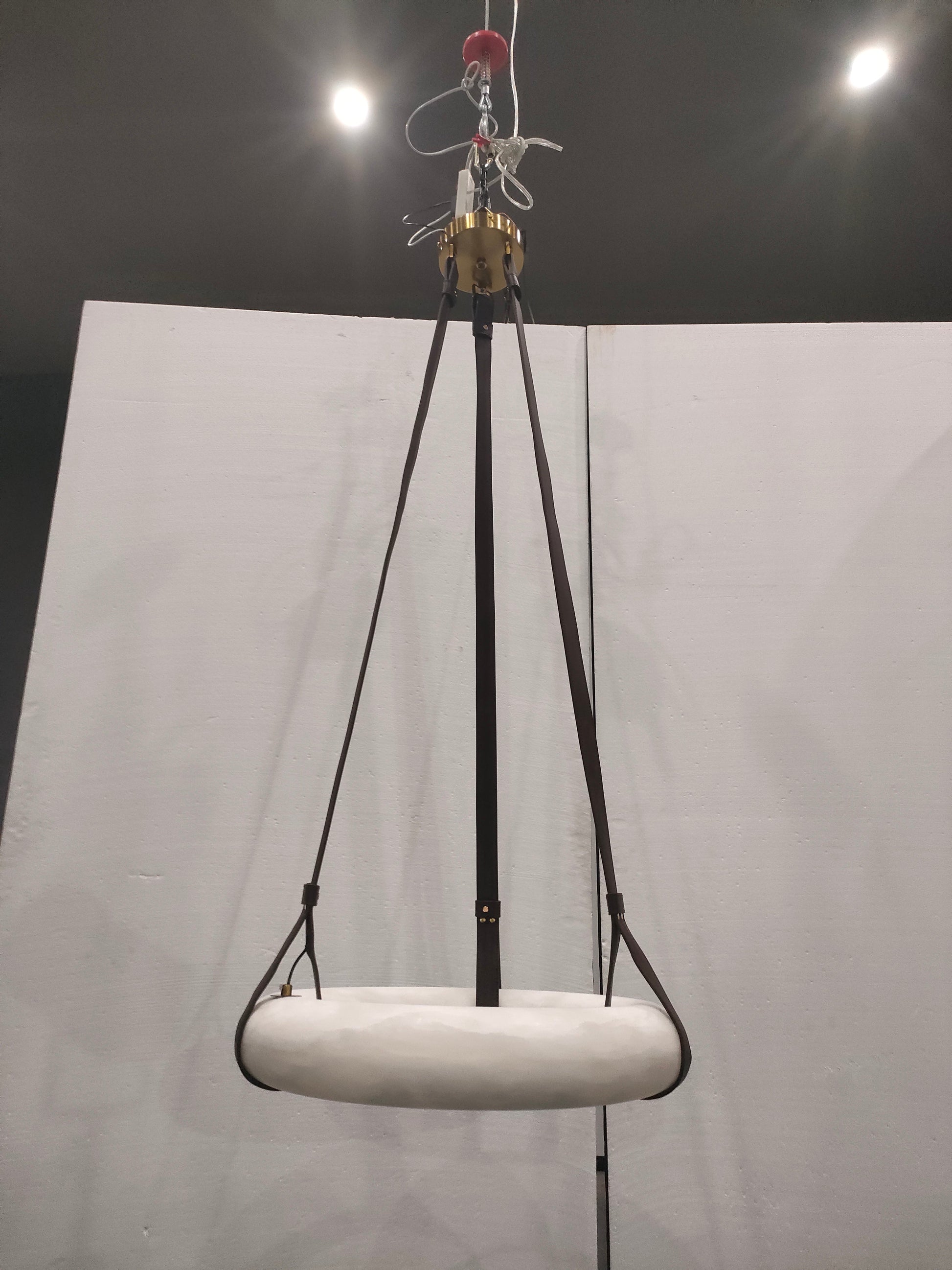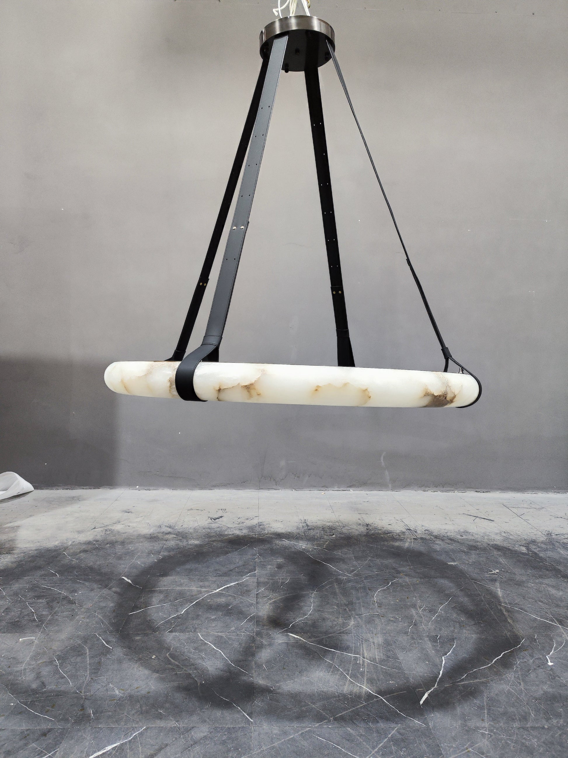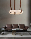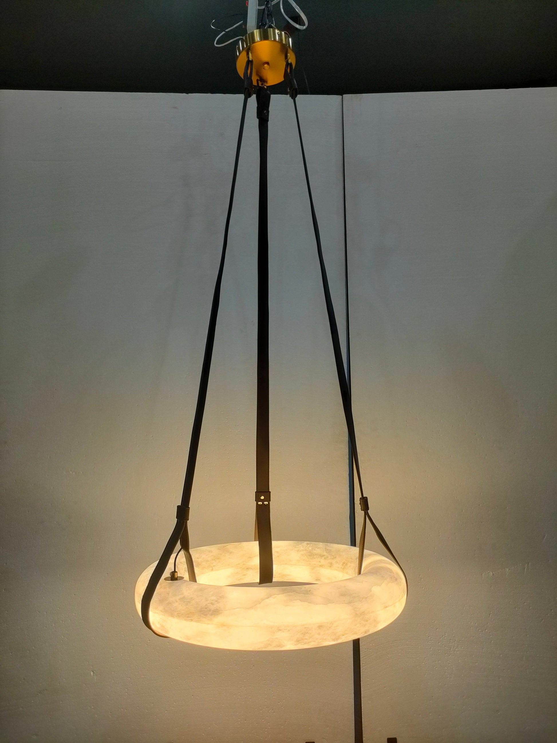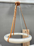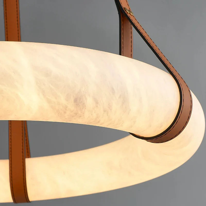 Oslo Alabaster Ring Round Pendant Chandelier, Modern Leather Strip Chandelier