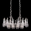 Composed of asfour crystal and 24pb glass. The materials converge to create a stunning interplay of light and clarity. The 14 lights. Compatible with e14/e12 bulbs. Cast a warm glow. Elevating the ambiance of your space. Finished in chrome. The metal accentuates the clear color palette. Contributing to its contemporary allure.