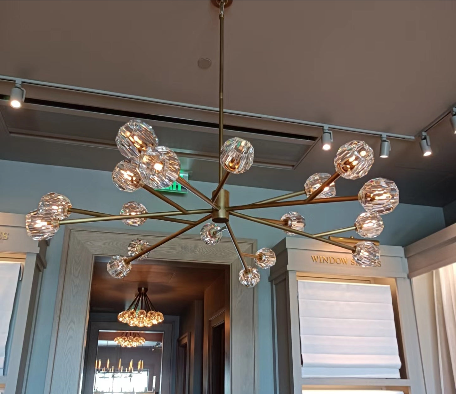 Each exquisite crystal ball combines high-quality copper elements to show luxury. Each crystal ball is carefully polished and cut by workers with many years of manual experience. The chassis and accessories are made of solid brass. The face of the crystal ball reflects warm light. It highlights the artistic flavor of this kind of lighting and the delicacy of manual lighting.