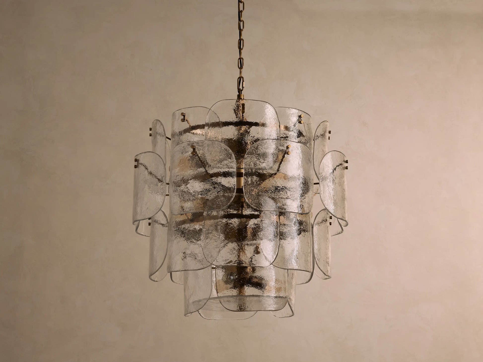Crafted from molten glass that’s molded into curved panels, our Bryan Lighting Collection is elegantly sculpted where each panel delicately overlaps one another to create a sense of depth and movement—diffusing light in a way that feels both soft and architectural. Presenting a curated palette of crystalline clear, pearlescent white, or rich umber tones, Bryan emits an ethereal glow in any room.
