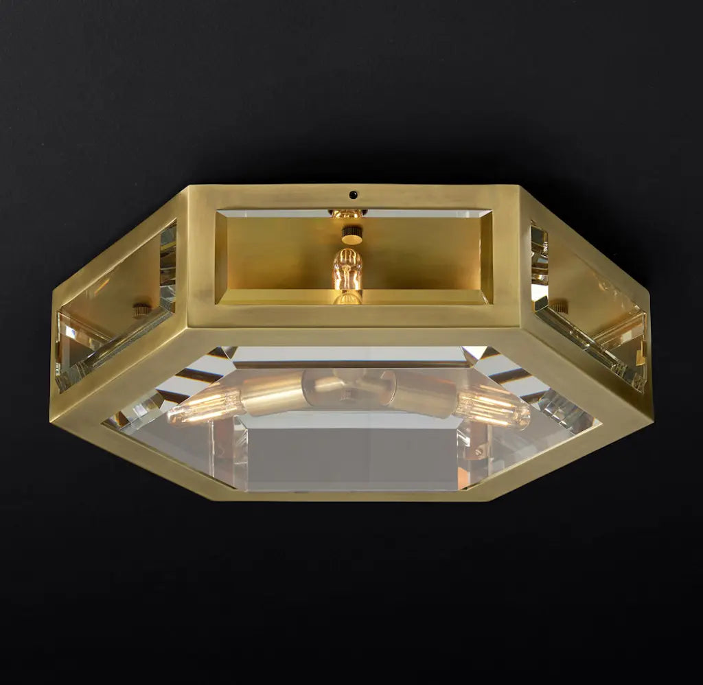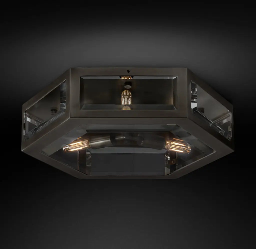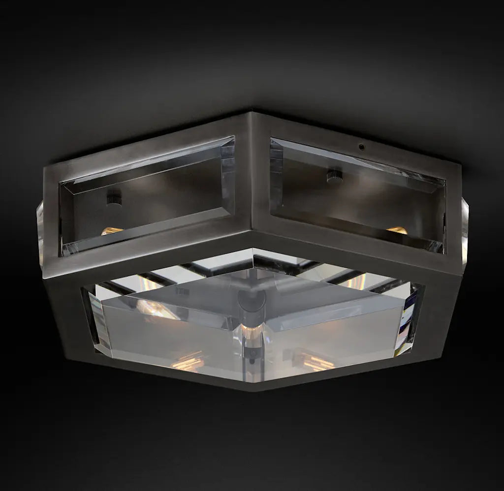 Expertly crafted from thick, solid metal, this flushmount is adorned with crystal panels that gently bevel outward, catching and bending the light into a shimmering display. The Chevalier Flushmount blends timeless elegance with modern sophistication, bringing a radiant glow to any space.