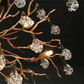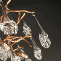 Modern Branch Chandelier is made of brass and glass drops, This artistic lighting fixture features a center area where life-like branches start to twist and turn from, covered with a luxurious brass finish. Multiple light bulbs provide the dramatics of light rays glistening through the crystal droplets.