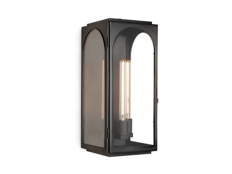 Simple-yet-elegant, our Palla Wall Sconce adds charming character with its elongated arched windows. Crafted from rust-resistant brass with a finish in either Brass or Matte Black, Palla complements any outdoor aesthetic while withstanding the elements of every season.