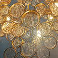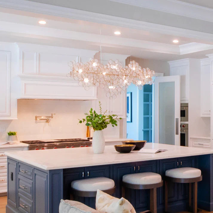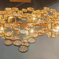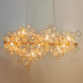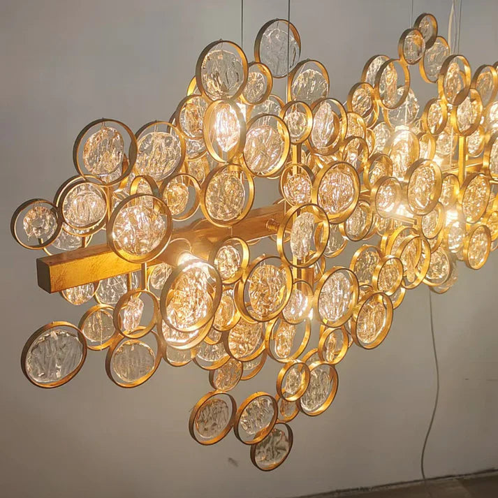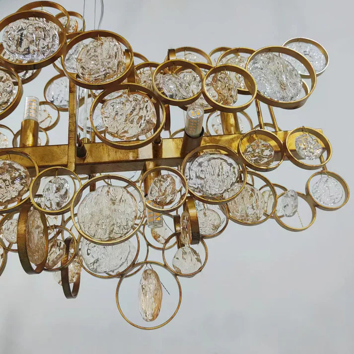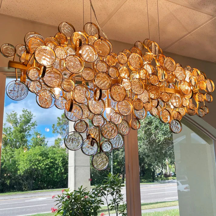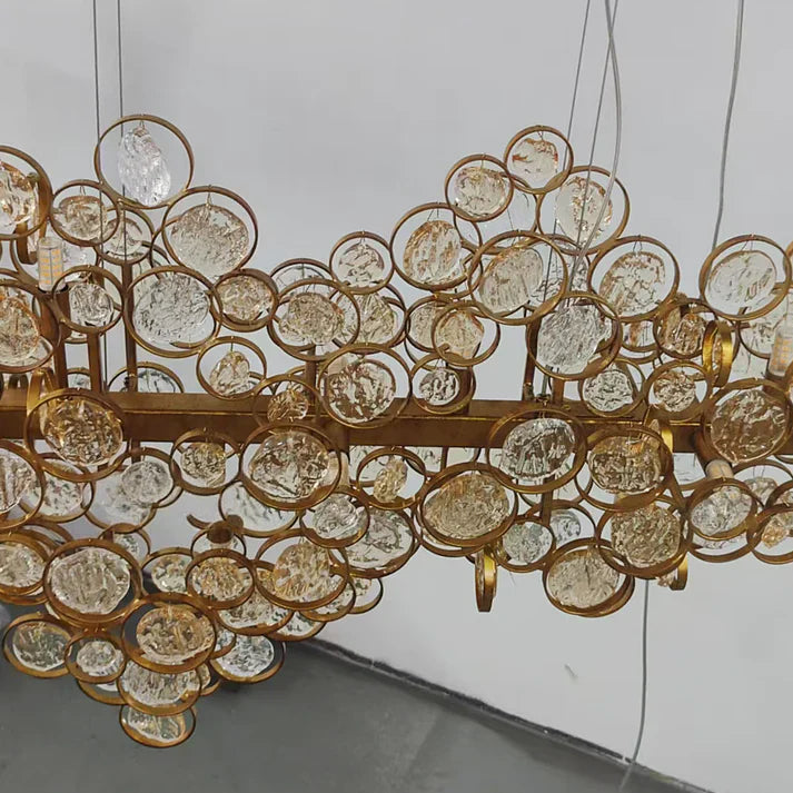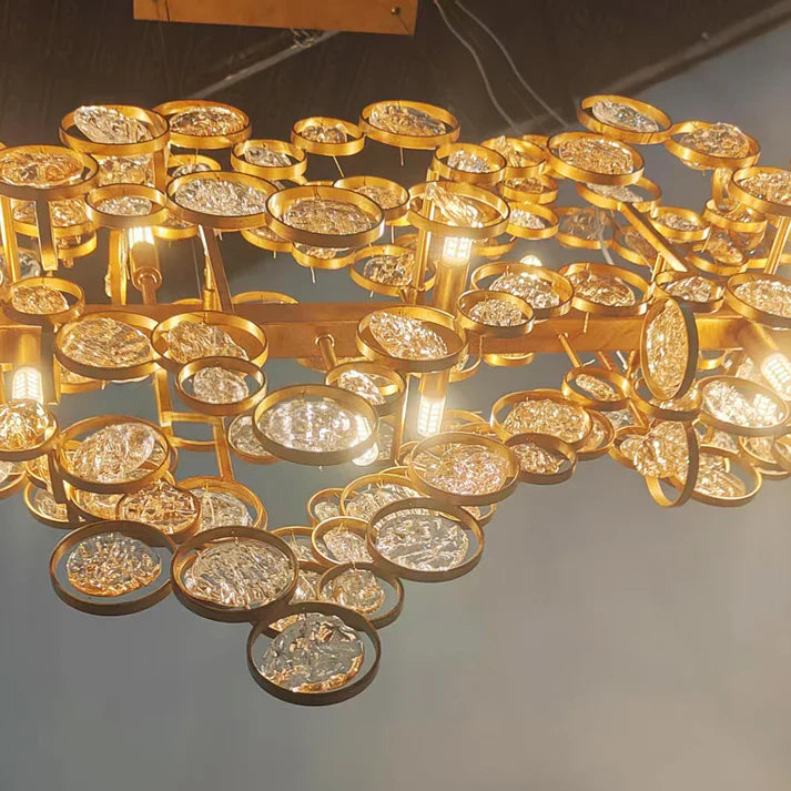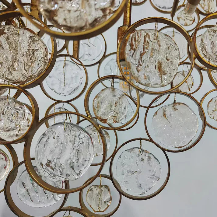 Delicate champagne silver or antique gold frames gracefully hold hand-strung glass wafers. Each pressed glass piece, a testament to fine craftsmanship, floats elegantly like soft, drifting clouds.