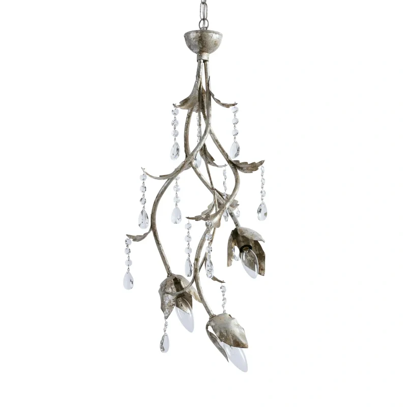 • Crafted by our artisan partners in Italy from hand-moulded iron, featuring a hand-applied silver finish and elegantly hand-strung, faceted glass crystals.